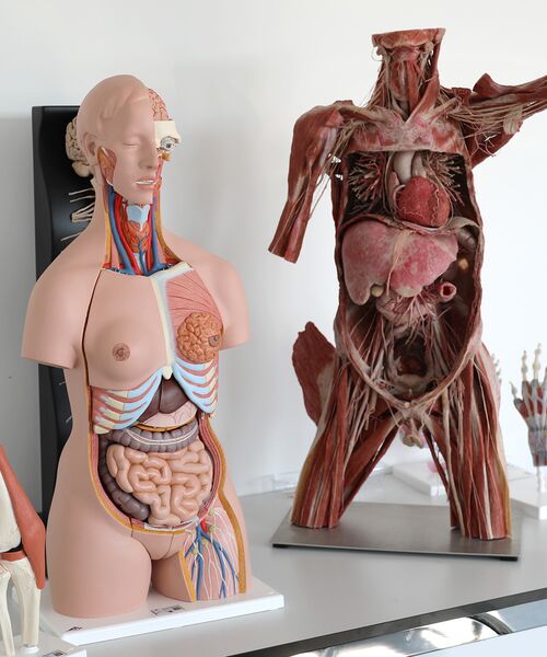 In unseren Anatomie Labs können die Studierenden jederzeit die Modelle, Plastinate, Anatomage-Tische und binokulare Mikroskope nutzen, um das Gelernte zu festigen und sich auf Modulprüfungen oder auf die 1. Ärztliche Prüfung vorzubereiten. Gleiches gilt auch für die Nutzung der Lehr- und Übungskilllabs. Mit dem studentischen Tutorienprogramm bieten wir die Möglichkeit, Wissen über das Peer-Learning in einer angenehmen und offenen Lernatmosphäre zu festigen, zu vertiefen und zu erweitern. Durch das gemeinschaftliche Erschließen von spezifischen Themenbereichen entsteht ein Lehr-Lern-Prozess auf Augenhöhe. Ein strukturiertes Lernprogramm mit individueller Betreuung durch die Lehrenden sowie fachbezogene Repetitorien unterstützen bei der individuellen Vorbereitung auf die M1-Prüfung.